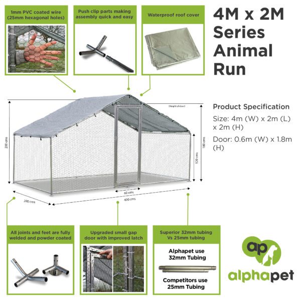 - Alphapet® 4M Series 4m x 2m Heavy Duty Walk-In Chicken Run